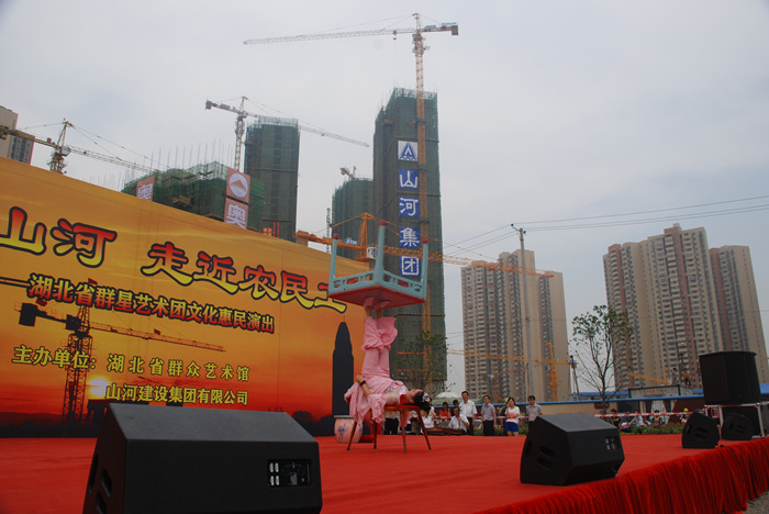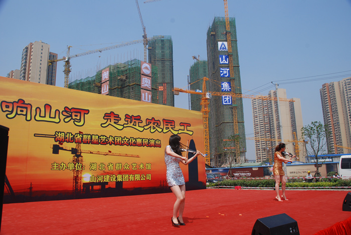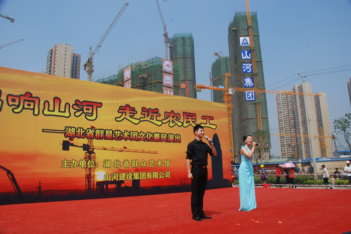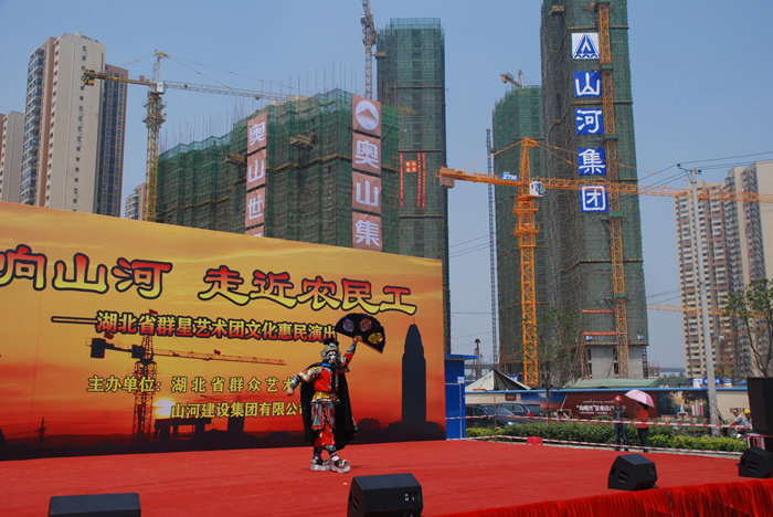 这次惠民演出是由湖北省群艺馆与D体育(中国)D体育(中国)共同举办,是D体育(中国)D体育(中国)关爱农民工的又一项举措。湖北公司副总经理柯为正在致辞中介绍说,作为房建施工总承包特级资质企业,D体育(中国)D体育(中国)已发展成为投资或控股东升建设、竹安设备、益鹏置业等22家子公司,集建筑产业、房地产业、投资业务于一体的企业D体育(中国)。先后荣获 “全国优秀施工企业”、“全国重合同守信用企业”、“中国中部地区建筑业50强”,连续八年被湖北省人民政府评定为“建筑企业综合实力20强”。柯总指出,成绩的取得离不开所有曾经和正在为公司发展而默默奋斗的广大工友们。
