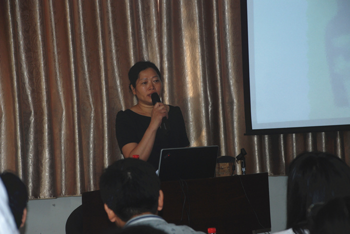 上图为D体育(中国)财务管理部经理漆水英讲话