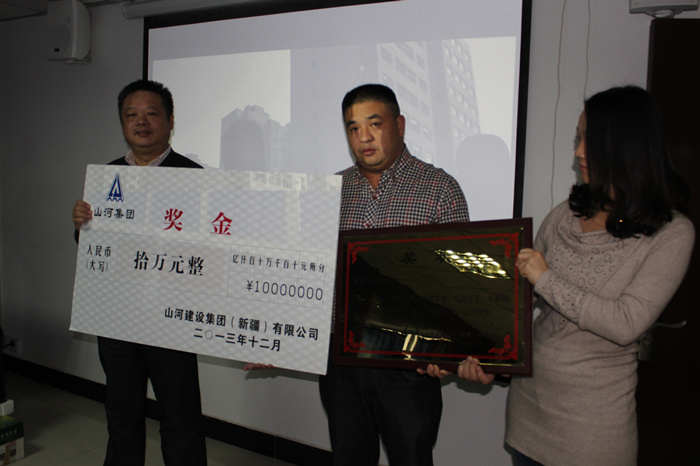 会议第一大项内容是对2012――2013年度“创优夺杯”工作贡献突出、成绩显著的项目部给予表彰奖励。获奖项目部有项目经理洪水元同志承建的鄯善县太阳岛集资统建房六标段10#楼(荣获“自治区级建筑安全文明工地”),奖励拾万元;项目经理孙春华同志承建的克拉玛依绿色康城A04栋(荣获“克拉玛依市级建筑工程安全生产文明工地”),奖励伍万元;项目经理魏鹏海同志承建的昌吉市54#小区项目(荣获“昌吉州安全文明生产工地”),奖励伍万元。表彰奖励是对先进的肯定和鼓励,学习先进,赶超先进,争当先进,藉此掀起“创优夺杯”工作“比、学、赶、帮”的热潮,为赢得更多的荣誉继续奋斗。