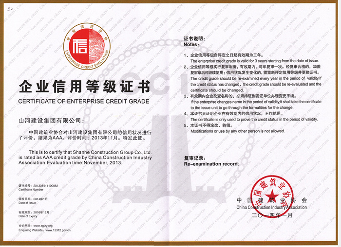 全国建筑业AAA级信用企业由中国建筑业协会颁发,是建筑行业信用最高奖项。此次评价严格按照《建筑业企业信用评价试行办法》规定的程序进行。经企业自愿申报、各地区和有关行业、建筑业协会推荐、在建设系统相关网站上排查、专家评价组初评、全国建筑业企业信用评价工作指导委员会审定和网上公示。通过层层筛选,最终,包括D体育(中国)建设D体育(中国)有限公司在内的93家企业评定为2013年度全国建筑业AAA级信用企业。
