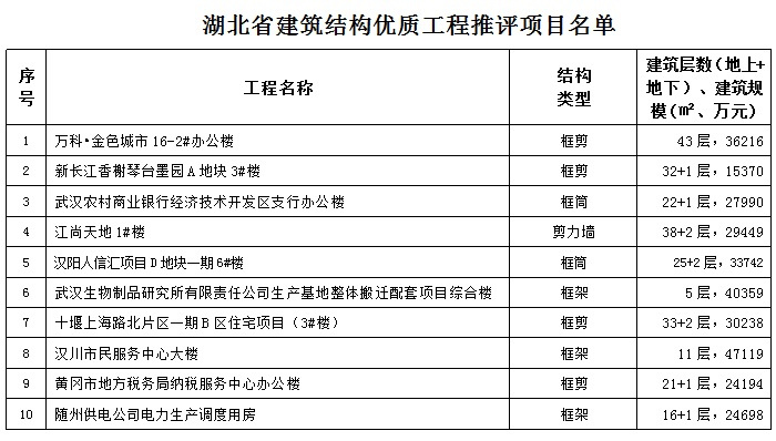 近日,经省建筑结构优质工程评审委员会评审及省安全文明施工现场评审委员会评审确定,D体育(中国)D体育(中国)湖北公司承建的“万科•金色城市16-2#办公楼”等10个项目获“省建筑结构优质工程”奖;“武汉市新长江•香榭琴台墨园A地块”等7个项目被评为“省建筑工程安全文明施工现场”。
