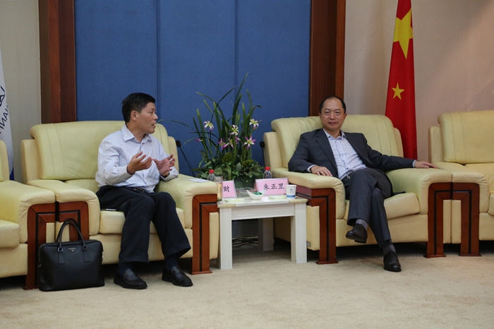 董事长程理财(左)与中国农业银行湖北省分行行长朱正罡(右)进行亲切交谈