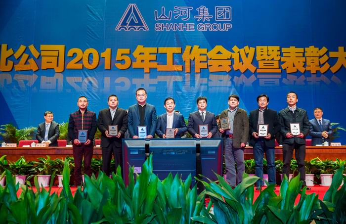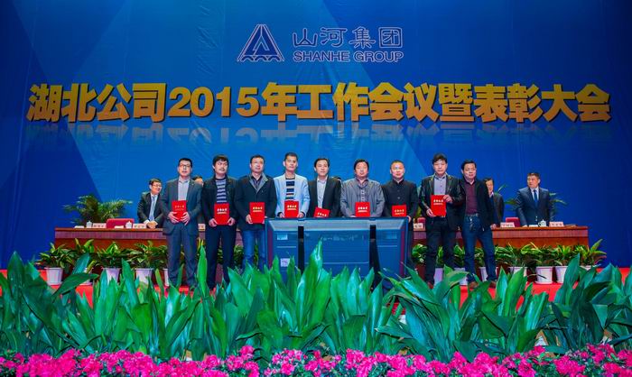 湖北公司副总经理罗定军宣读《关于表彰2014年质量安全、文明施工管理先进项目部的决定》及《关于对2014年获奖工程奖励的决定》,根据评审标准,对江西万科海上传奇、郑州万科祥营还迁区等12个质量、安全文明施工管理先进项目部;十堰大美盛城、荆州人信汇等11项获奖工程及黄冈天端公馆、湖南江南熙元书香苑等2个现场观摩会项目部进行了表彰。