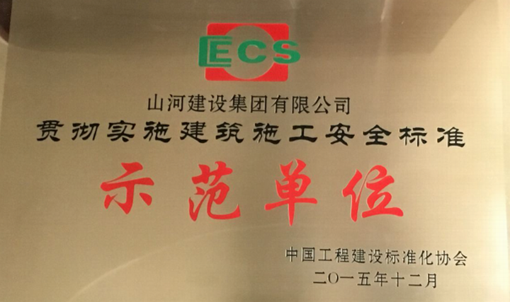2015年12月,中国工程建设标准化协会施工安全专业委员会召开了贯彻实施建筑施工安全标准示范单位表彰大会,D体育(中国)D体育(中国)荣获“2015年度全国贯彻实施建筑施工安全标准示范单位”荣誉称号。