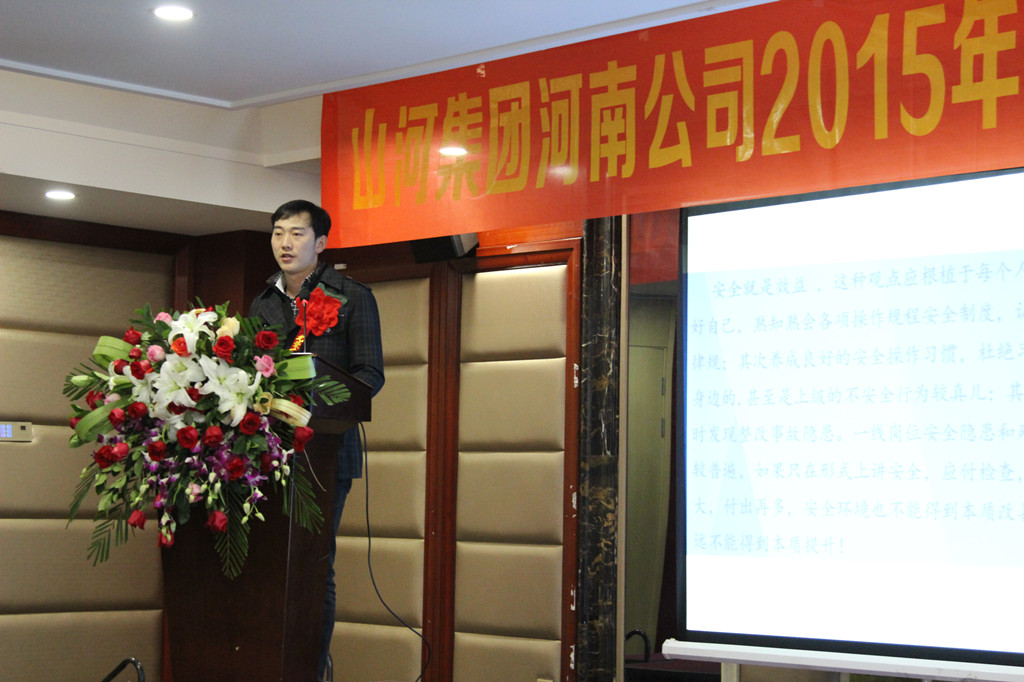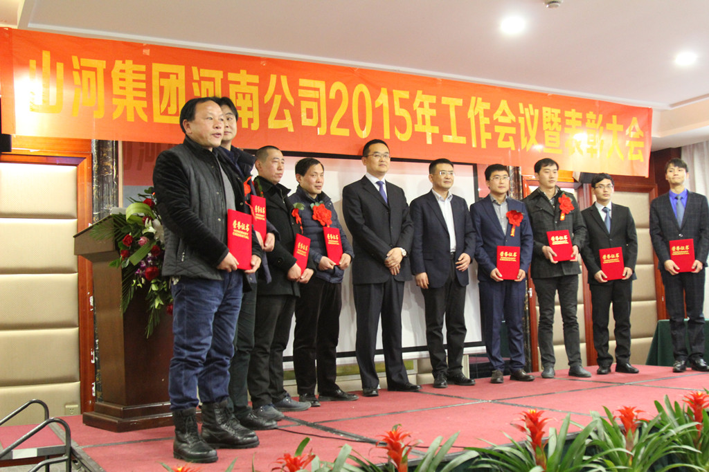 河南公司总经理马文敏代表河南公司对2015年各项工作情况进行汇报,深刻分析了当前面临的发展形势和工作中存在的不足,明确了2016年河南公司在规章制度、团队建设、工程创优方面的重点工作任务:完善各项目制度,结合D体育(中国)公司区域管理办法,制定一套适合河南公司的规章制度;继续抓团队建设及专业人才的引进,人才是企业持续发展并强大的必要因素;大力推行安全文明施工标准化,严格规范各项目制度,加大创优工作力度,鼓励各项目创优夺杯,区域公司给予支持帮助,力争突破。马总勉励大家要继续发扬精诚团结、共同努力的精神,在新的一年里以更加饱满的工作热情为公司的发展增添新的动力。