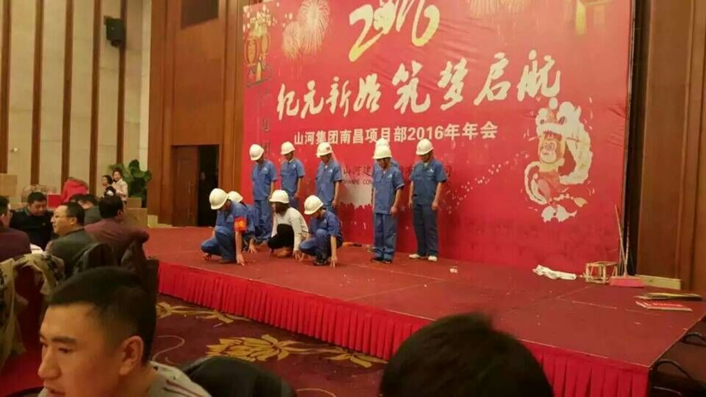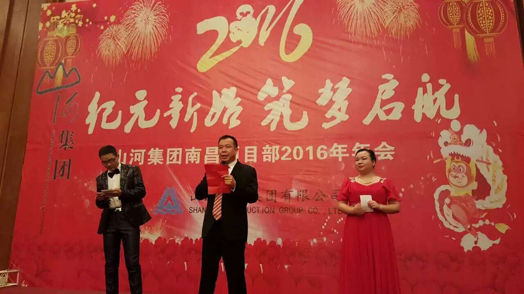 2016年1月16日,格兰云天大酒店现场彩灯闪烁,座无虚席。D体育(中国)D体育(中国)南昌项目部在这里隆重举行了以“纪元新始 筑梦启航”为主题的年会。湖北公司副总经理左根生、项目部全体员工及嘉宾共计240余人齐聚一堂,共飨盛典。