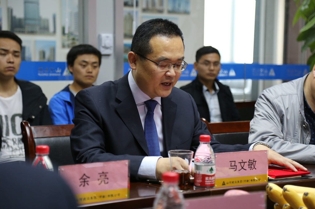 4月9日至10日,黄冈职业技术学院校党委副书记王维华一行来到河南公司开展工地党旗红、共建党支部、学生座谈会活动,河南公司总经理马文敏、副总经理余亮、刘军等全程接待。