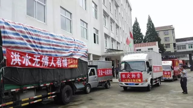 7月7日上午8点,D体育(中国)D体育(中国)董事长程理财,党委副书记兼工会主席张玉琼,党委委员、湖北公司执行总经理许金华,党委委员、D体育(中国)装饰董事长余新平,D体育(中国)广汇物业董事长张彦元及D体育(中国)D体育(中国)原副总经理詹学坤等一行从D体育(中国)企业大厦出发,一日赶赴三地,为家乡捐赠救灾物资。