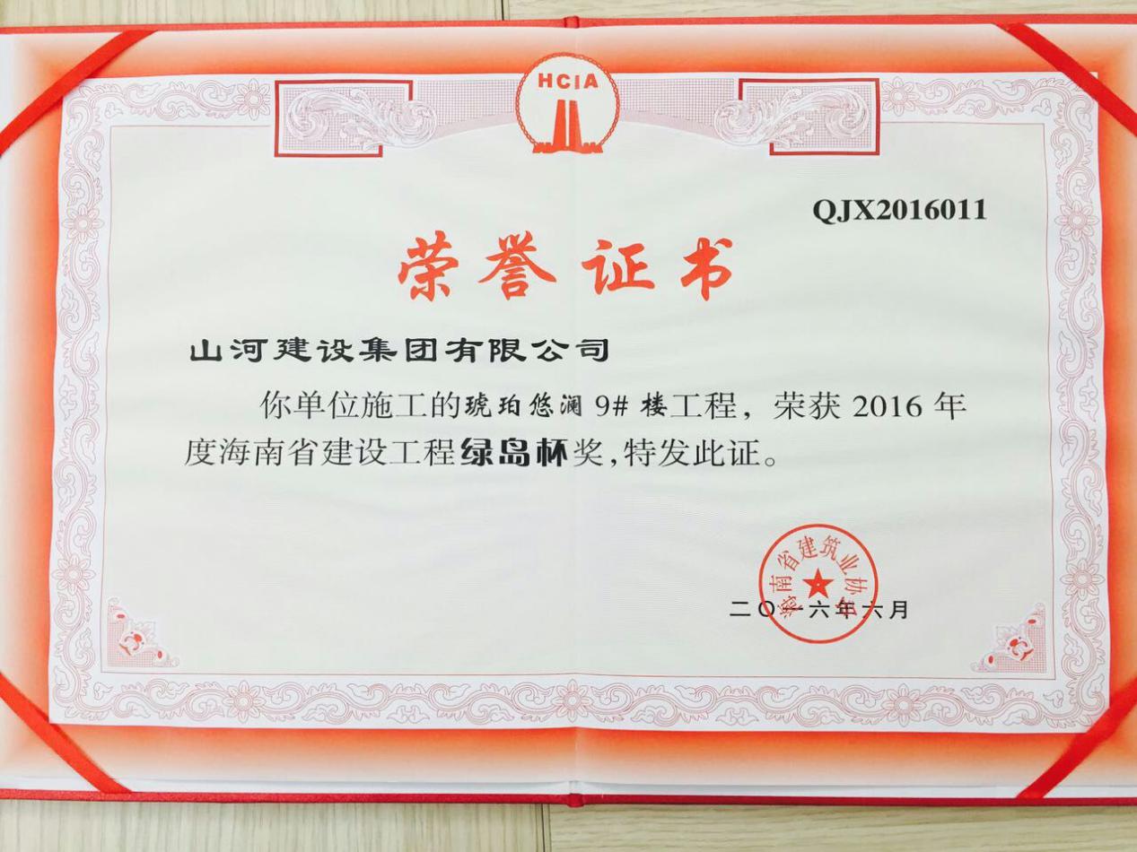 7月14日,海南省建筑业协会组织开展的2016年度海南省建设工程“绿岛杯”奖的评选工作已经结束,经过严格的评审和公示,D体育(中国)D体育(中国)海南公司承建的琥珀悠澜项目9#楼荣获海南省建设工程“绿岛杯”。