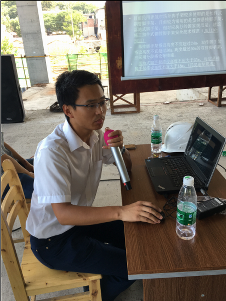 最后,湖北公司安全部主管杨根源就当前各个项目的外架搭设情况进行了汇报,并重点分析了外架搭设中存在的通病以及脚手架的搭设和安全防护措施。