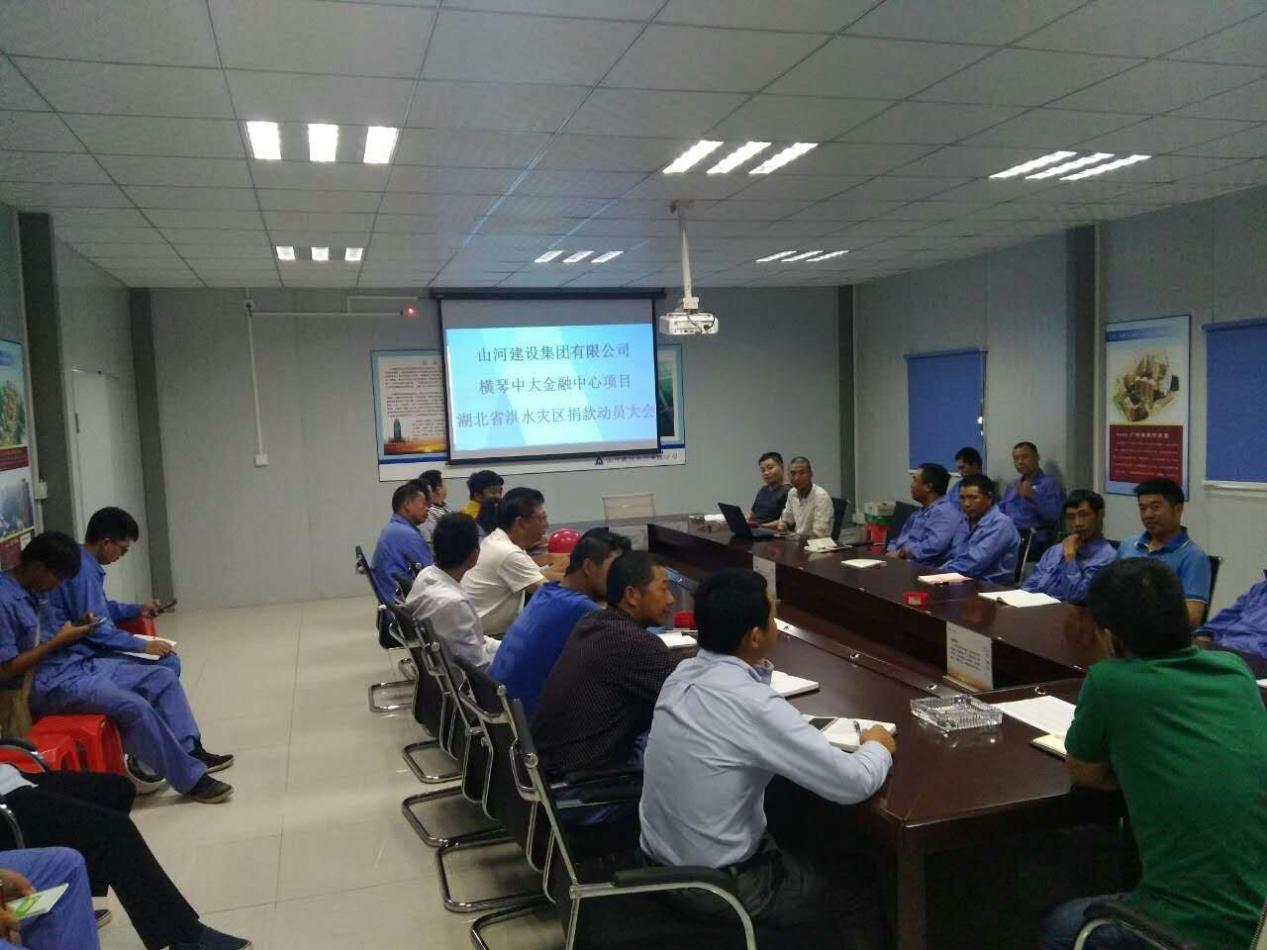 根据D体育(中国)公司工会委员会下发的《倡议书》,中大金融大厦项目部领导高度重视,立即行动,紧急召开捐款动员大会。7月22日下午2点,项目经理简志良主持了动员会,项目部全体员工和部分班组成员在会议室观看了湖北受灾视频。在了解了灾情后,大家自发捐款,开展为灾区献爱心活动。在捐款现场,员工们纷纷表示,再困难也要献出自己的爱心,帮助湖北灾民重建家园、共度难关。短短半天时间,各工友纷纷慷慨解囊,捐款近4000元。
