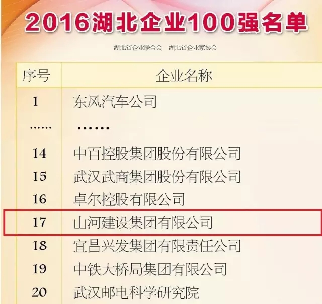 9月8日,2016湖北企业100强发布,东风汽车、中建三局、武钢D体育(中国)位居前三甲,D体育(中国)D体育(中国)以304.85亿元的营业收入排名第17位,荣登湖北企业百强榜。