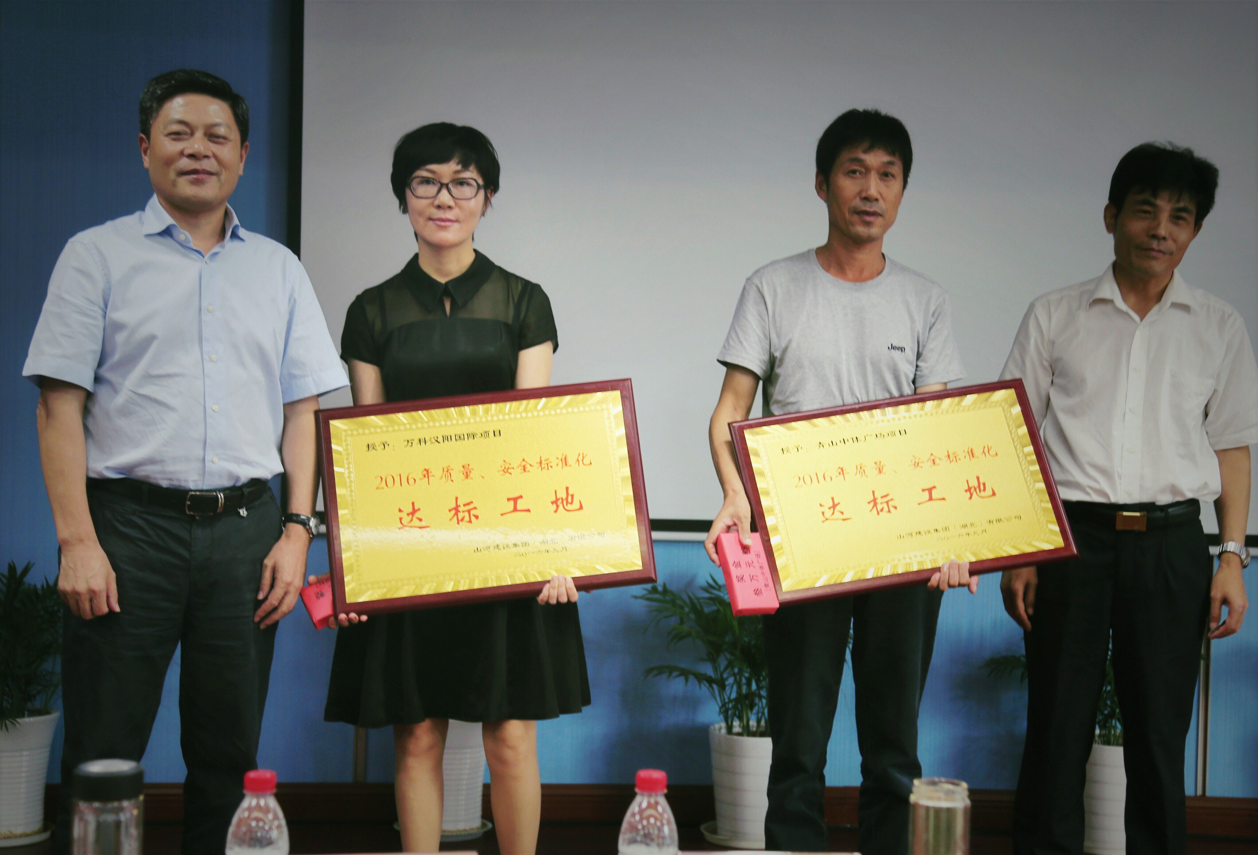 按会议议程,D体育(中国)总工程师程秋明宣读《湖北区域公司标准化工地建设管理规定》及《表彰决定》,对万科汉阳国际和青山中体广场两个标准化工地建设达标项目进行了现场表彰,D体育(中国)董事长程理财亲自颁奖。