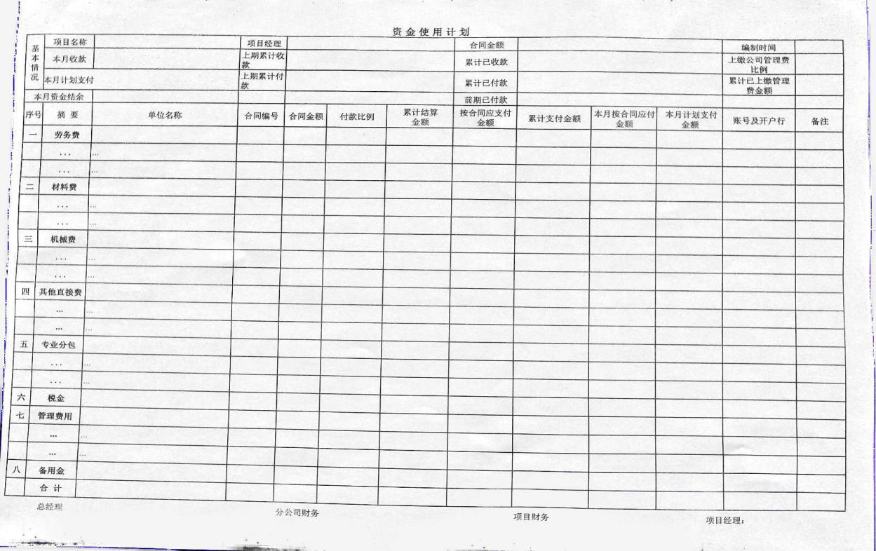 3、每月项目回款后,上报资金计划,计划的内容应覆盖全,累计收款、累计资金结余、每家单位累计结算、累计付款、计划支付等各项金额应准确无误。资金计划经区域公司财务部审核及总经理批复后,单独存档,付款时逐笔核对单位及金额。