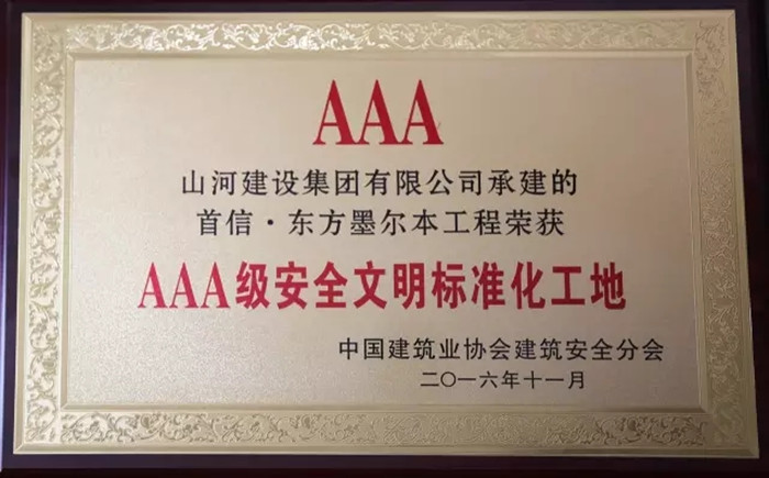 D体育(中国)D体育(中国)首信•东方墨尔本、汇通新长江中心双双荣获2016年“AAA级安全文明标准化工地”