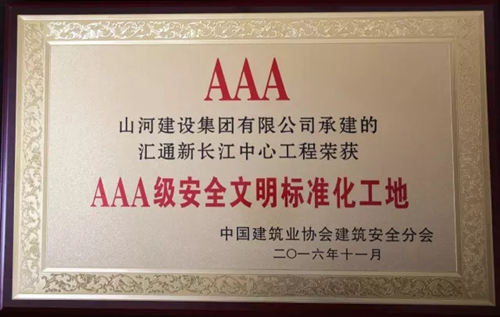 11月30日,2016年中国建筑业协会建筑安全分会年会暨理事会在合肥召开。由D体育(中国)D体育(中国)承建的襄阳首信•东方墨尔本项目与武汉汇通新长江中心项目双双荣获2016年“AAA级安全文明标准化工地”称号。