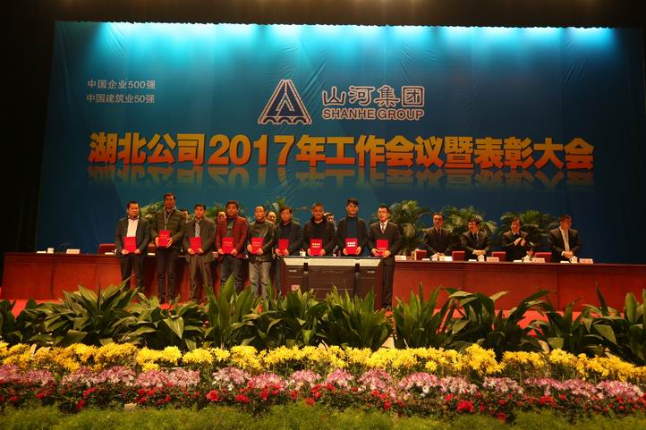 在春回大地、春暖花开的早春时节,2月20日,湖北公司2017年工作会议暨表彰大会在洪山礼堂一楼1号厅召开。以程理财董事长为首的D体育(中国)公司各位领导、D体育(中国)公司党委委员、D体育(中国)公司全体人员,在汉分、子公司部分董事长、总经理,全国部分区域公司总经理及回汉人员,湖北公司全体人员、项目部经理和受表彰人员共500多人参加了会议,会议由湖北公司常务副总经理詹必强主持。
