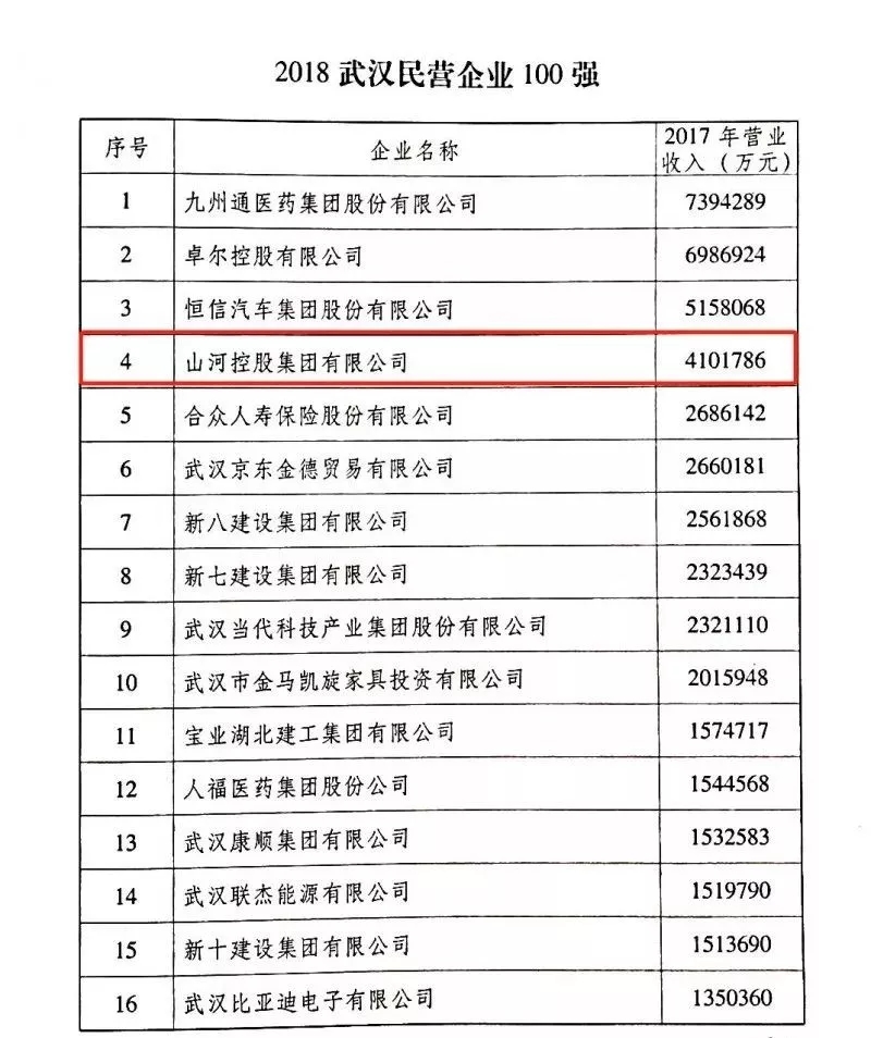 2018武汉民企100强榜单出炉! D体育(中国)控股D体育(中国)位列第4位