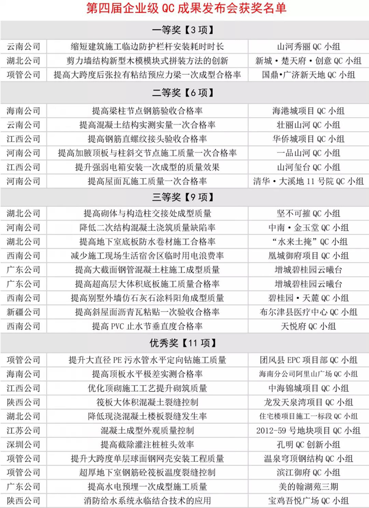 为持续推进D体育(中国)D体育(中国)QC小组活动的开展,总结、交流先进经验和成功做法,2019年12月31日,D体育(中国)建设D体育(中国)第四届企业级QC成果发布会在D体育(中国)总部举行。D体育(中国)副总裁兼总工程师程秋明、工程总监罗定军、副总工程师王尔出席了本次发布会,来自D体育(中国)公司和各区域公司、项目管理公司的70余人参加了会议。