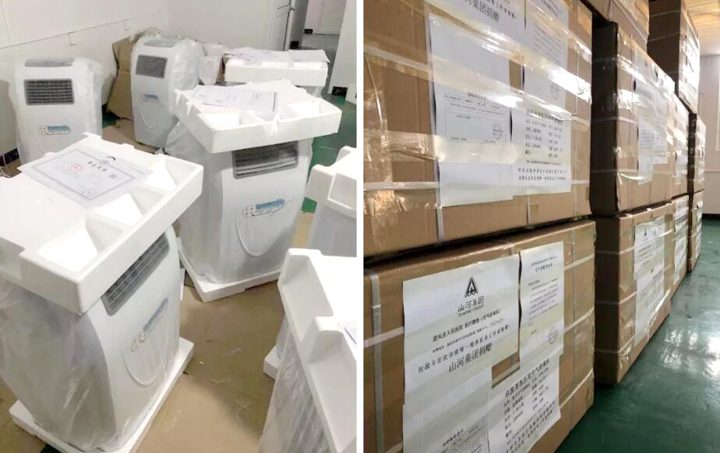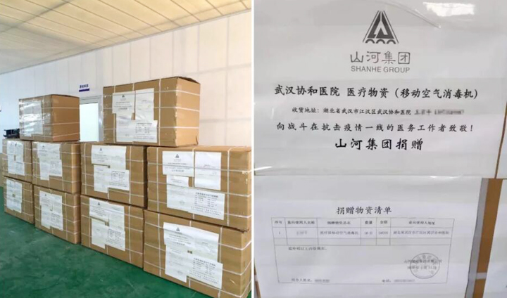 20台医用移动空气消毒机,捐赠予武汉协和医院及团风县人民医院;