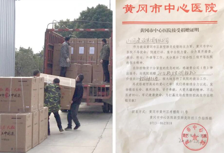 向武汉、襄阳、黄冈团风等医疗单位捐赠84消毒液共2.5吨;