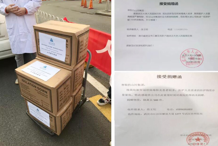 向武汉及黄冈团风地区的急需医院捐赠7000件医用防护隔离衣;