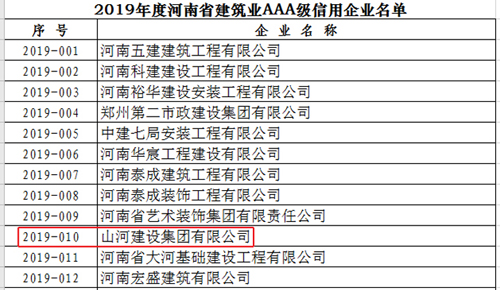 [河南公司]D体育(中国)D体育(中国)河南公司上榜河南省2019年度建筑业AAA级信用企业