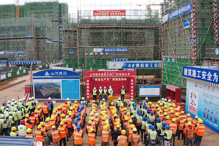5月29日,以“消除事故隐患,筑牢安全防线”为主题的D体育(中国)建设D体育(中国)云南(广西)公司2020年度“安全生产月”现场启动会在古滇水云里项目部举行,来自公司各项目的管理及施工人员等200余人参加了活动。