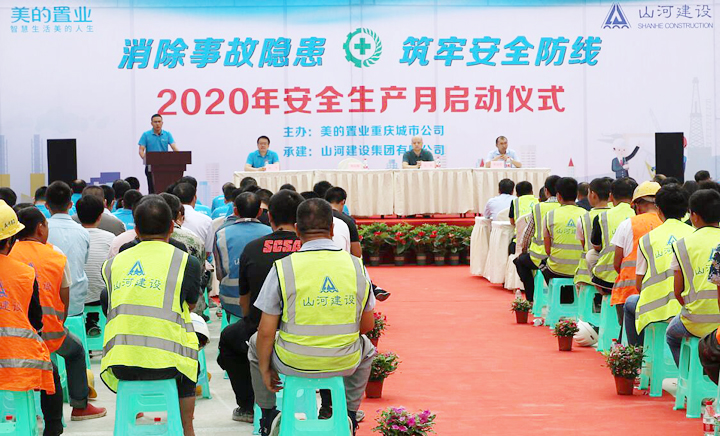 为进一步夯实安全生产管理基础,增强全员安全生产责任意识和安全事故防范意识,6月10日,美的置业川渝区域重庆城市公司和D体育(中国)建设D体育(中国)西南公司联合组织开展了以“消除事故隐患 筑牢安全防线”为主题的2020年安全生产月启动仪式,活动在西南公司承建的美的云来项目施工现场举行。