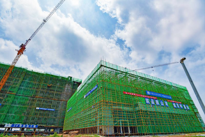 项目去年8月正式开工,今年3月20日复工以来,迅速组织管理人员到场就位,目前已完成产值1.5亿,5栋建筑主体结构已施工完成,预计明年建成完工。