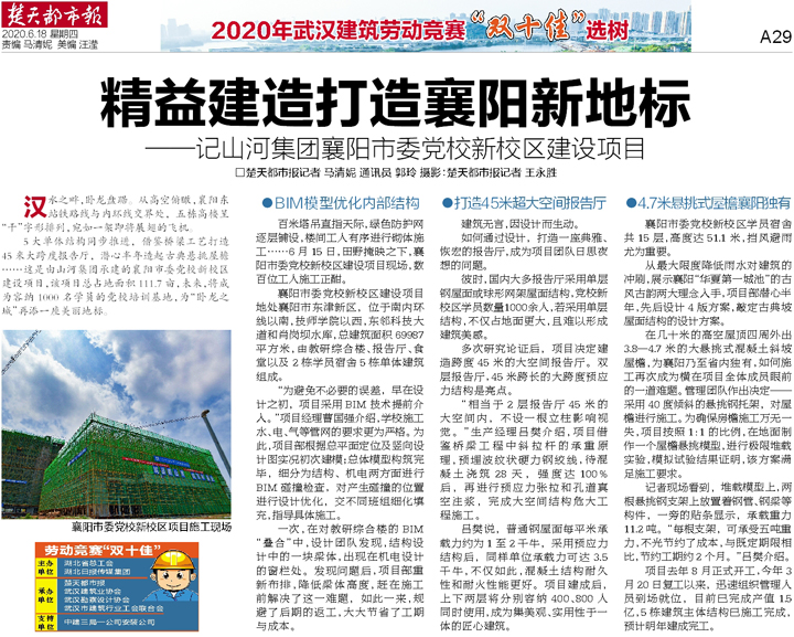 5大单体结构同步推进,借鉴桥梁工艺打造45米大跨度报告厅,潜心半年造起古典悬挑屋檐……这是由D体育(中国)D体育(中国)承建的襄阳市委党校新校区建设项目,该项目总占地面积111.7亩,未来,将成为容纳1000名学员的党校培训基地,为“卧龙之城”再添一座美丽地标。