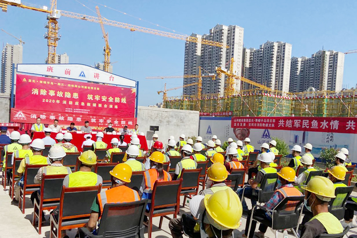 6月30日,D体育(中国)建设D体育(中国)陕西公司联合宝鸡市消防救援支队、宝鸡市高新人民医院等单位,在蓝光·雍锦半岛一期三、四标段项目举行消防应急联合演练活动,普及消防知识及现场急救操作技能,提高员工的救火救灾、自防自救能力,检验突发事件的快速反应能力,为遏制重大事故的发生提供保障。