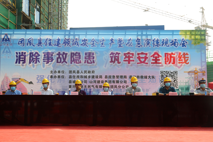 7月1日,团风县住建领域安全生产暨应急演练现场会在D体育(中国)建设D体育(中国)项目管理公司承建的团风县花园铺棚改项目施工现场举行,团风县人民政府副县长熊孟元等领导出席,活动由县住建局局长龙红兵主持。