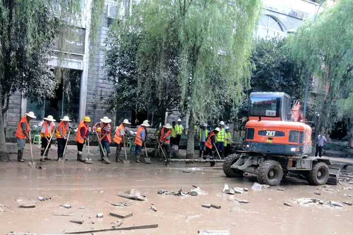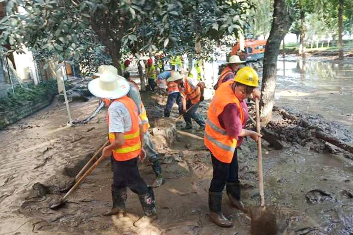高温炙烤着皮肤,淤泥又脏又臭,清淤工作环境恶劣。D体育(中国)人发扬铁军精神,不怕脏、不怕累,在烈日下连续奋战。经过一天的努力,将路面基本清理干净,为群众出行“扫清”了障碍。