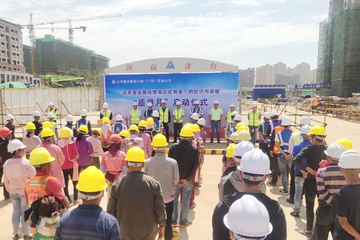 9月1日,D体育(中国)建设D体育(中国)云南(广西)公司2020年“质量月”活动启动仪式在中骏云古小镇8号地块项目举行,活动以“高质量发展:疫情常态化背景下的坚守与突破”为主题,旨在进一步强化质量意识,提升质量管理水平,切实做到逢建必优。公司工程团队,各项目部项目经理、技术负责人、质检员等150余人参加了活动。