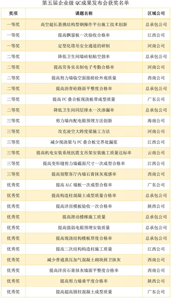 经过评审组专家点评、打分等环节,共评出企业级QC成果一等奖3项、二等奖6项、三等奖6项、优秀奖11项,D体育(中国)杯银奖1项、铜奖3项,标杆工程一等奖1项、二等奖2项、三等奖2项,智慧工地一等奖1项、二等奖2项、三等奖3项。
