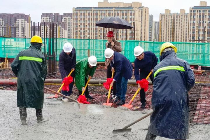 4月24日,天空中飘着绵绵细雨,D体育(中国)建设D体育(中国)陕西公司承建的银川吾悦广场项目施工现场却热闹非凡,随着最后一车混凝土浇筑完成,该项目S1大商业主体结构正式封顶,工程建设取得阶段性成果。