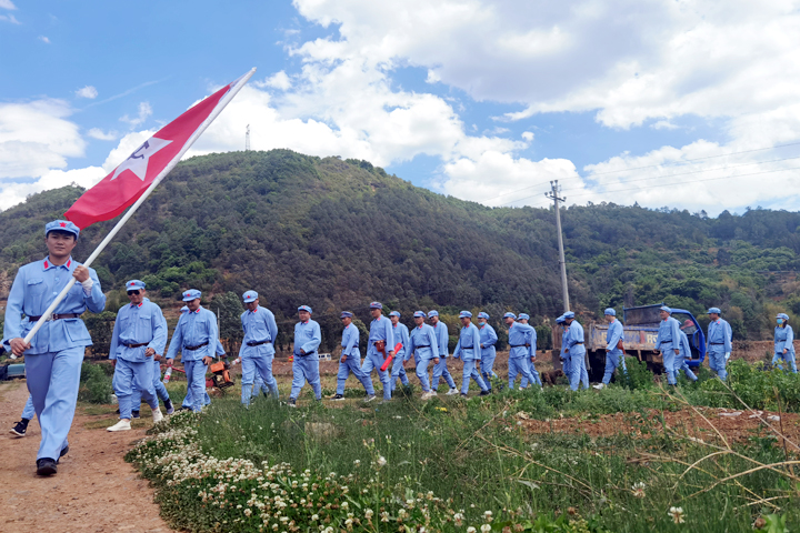上午9时,全体党员、预备党员、发展对象、入党积极分子等近50人整装出发,乘车前往120公里外的丹桂红军村。这个看起来不起眼的小村庄,见证了中央红军巧渡金沙江的伟大壮举,也见证了中国革命史上的一次重大转折。抵达目的地后,大家身着戎装,英姿飒爽地走进丹桂红军村,开始了这场红色之旅。