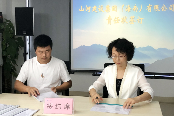 随后,总经理王君一和各职能部门分别签订了目标责任状,落实年度目标计划。责任状的签订,进一步明确了各职能部门责任主体,责任人郑重承诺将紧紧围绕目标任务,将压力转化为动力,全力以赴完成各项工作,为海南公司实现新一轮发展贡献力量。