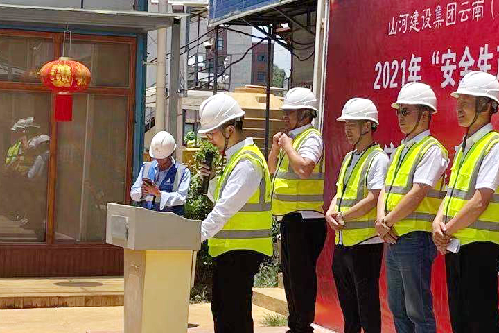 5月29日,D体育(中国)D体育(中国)正式启动2021年“安全生产月”活动。云南(广西)公司迅速响应,于当日下午在昆明龙四地块城市棚户区改造项目施工现场举行了2021年“安全生产月”活动启动仪式。公司副总经理刘火焱、秦大顺,工程团队全体人员,各项目部代表等150余人参加了启动仪式。
