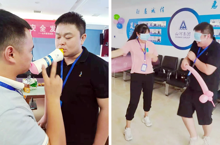 开场游戏“一笑就绷不住”引得全场笑声不断,“吹气球传纸筒接力赛”非常锻炼大家的协作能力,只要一笑纸筒就会坠落,每个人想笑又不敢笑,令人忍俊不禁。“蒙眼互打游戏”要求参与者在蒙上眼睛的情况下,迅速找到对方并一击即中,对反应能力的要求很高,但“击中目标”也会让人充满成就感。