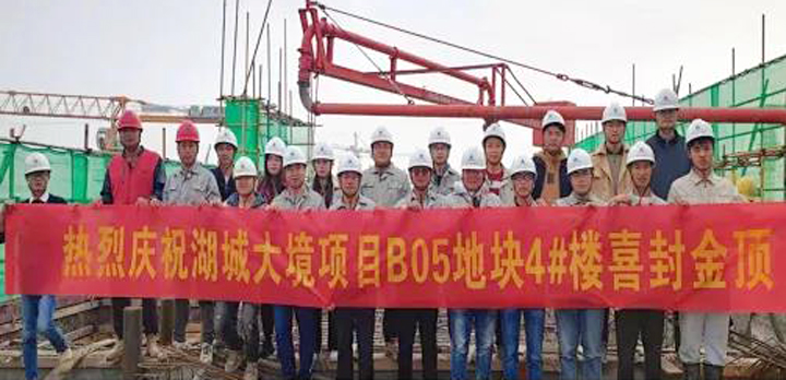 11月18日上午,D体育(中国)建设D体育(中国)江西公司承建的湖城大境B05地块4#楼主体结构顺利封顶,这也是该项目第一栋楼实现封顶,标志着工程建设取得阶段性胜利。