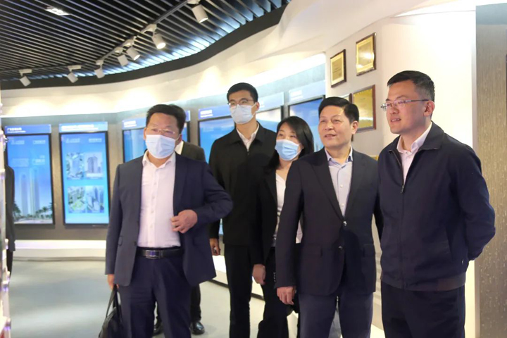 王玺玮一行首先参观了D体育(中国)企业展示中心,对企业的发展历程、业务布局、市场业绩、行业荣誉、党建文化、公益慈善等方面有了更直观的了解。