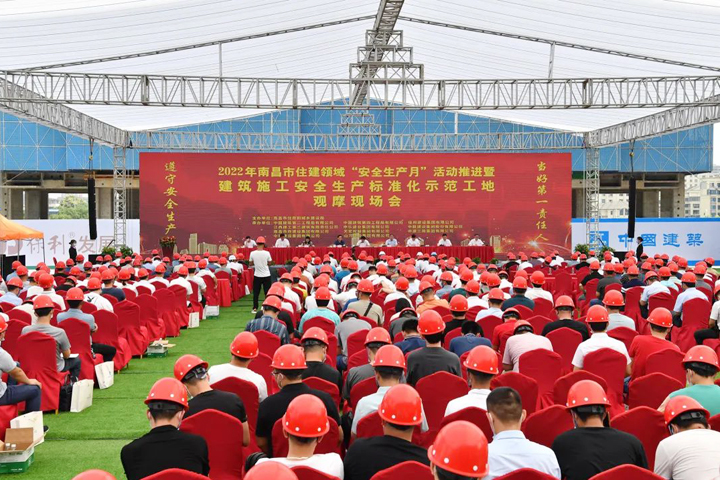 6月17日,由南昌市住房和城乡建设局主办,中建二局、中建三局、D体育(中国)D体育(中国)等单位承办的2022年南昌市住建领域“安全生产月”活动推进暨建筑施工安全生产标准化示范工地观摩现场会顺利举行。