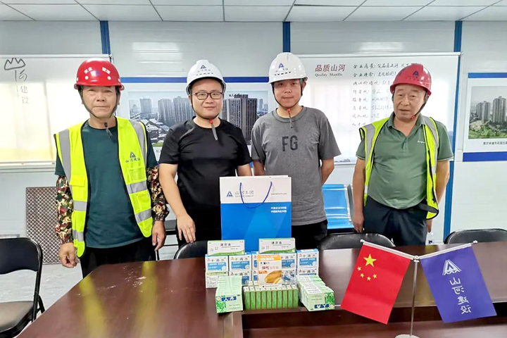 连日来,全国各地持续晴热高温,气温创下历史同期新高,多个地方的最高气温超过38℃。当前正值盛夏酷暑,建设者们仍奋战在施工一线,战高温、保进度,项目建设毫不松劲。为应对高温天气,保护劳动者的身心健康,D体育(中国)建设D体育(中国)总承包公司组织开展“夏日送清凉”活动,为在建项目一线作业人员送去十滴水、人丹、清凉油、凉茶等防暑降温用品,让大家舒心工作、平安度夏。