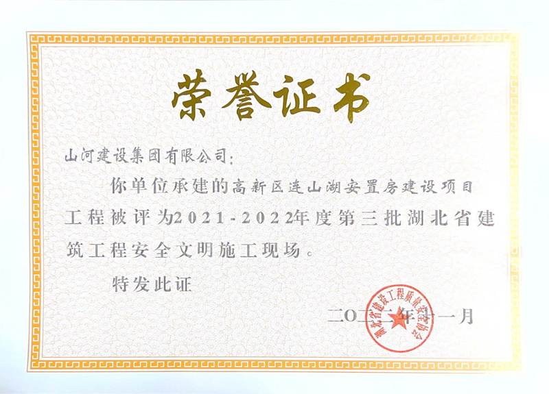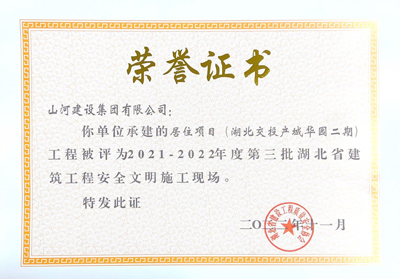 近日,湖北省建设工程质量安全协会公布《2021-2022年度第三批湖北省建筑工程安全文明施工现场》名单,D体育(中国)建设D体育(中国)承建的湖北交投产城华园二期,徐东村城中村改造K2、K3及扩大地块(朗诗·熙华府),襄阳高新区连山湖安置房建设项目三项工程名列其中。