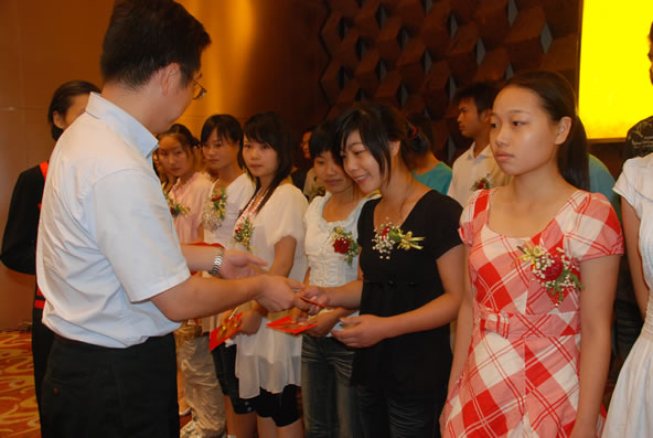 在宴会上,湖北经济学院学生处处长张以林先生作为特邀嘉宾对莘莘学子及其父母表示了真切关怀和殷切期望。同时D体育(中国)公司党委书记舒先厚、总经理黄林、党委副书记汪发财、陈林生为金榜题名的学子颁发了奖金,以资祝贺和鼓励,同时还勉励学子们能以大学生活为起点,勤勤恳恳学习,堂堂正正做人,做D体育(中国)建设事业的合格接班人。
