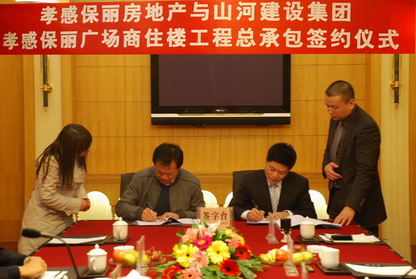 2009年11月23日下午5时,在美丽的东湖之滨,孝感保丽房地产与D体育(中国)建设D体育(中国)举行了“孝感保丽广场工程”总承包签约仪式。